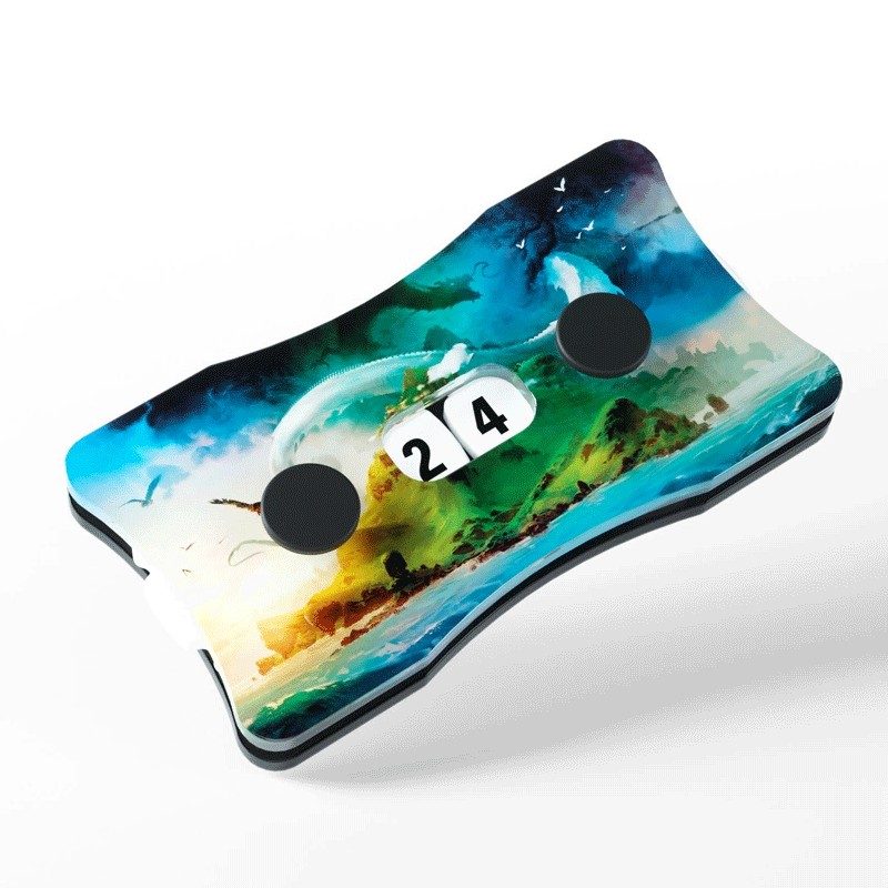 Les compteurs Double Vie en acrylique premium sont disponibles en 6 designs exclusifs : 5 illustrations emblématiques (couleurs de terrain : Marais, Île, Montagne, Forêt, Plaine), idéales par exemple pour Magic : the Gathering™, et un dégradé de couleurs