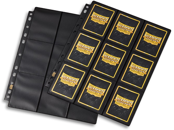 18 pochettes à rangement latéral pour cartes format standard par page.
