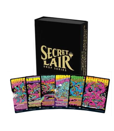 Ce coffret exclusif Secret Lair Calling All Hydra Heads contient 6 cartes foil dont 1 jeton, le tout en anglais et arborant de magnifiques illustrations par l’artiste CatDirty. Vous y trouverez 5 hydres parmi les plus populaires de Magic ainsi qu’un jeton