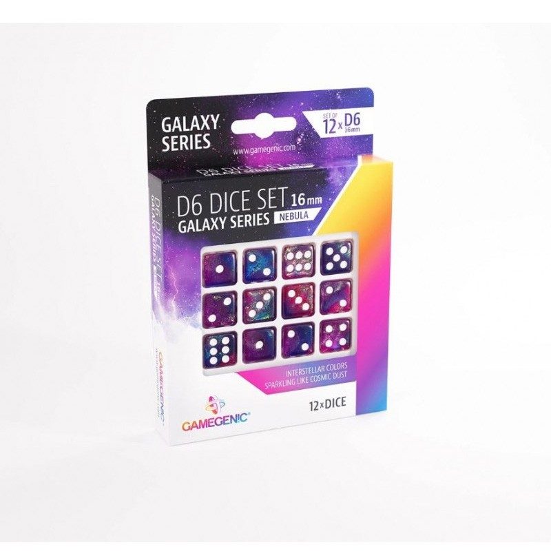 Ce set contient 12 dés à six faces de taille 16 mm.